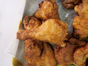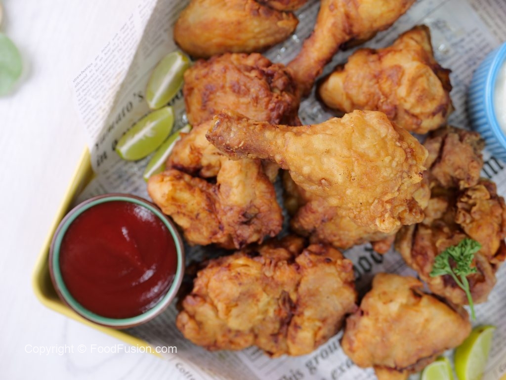-Karahi mein cooking oil garam karein aur chicken ko halki ancch per golden & crispy ho janay tak fry ker lein (10-12 minutes).