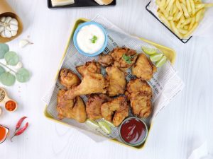 -In a wok,heat cooking oil & fry chicken on low flame until golden & crispy (10-12 minutes).