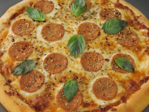 -Ab tayyar red sauce dal ker pheela lein,cheddar cheese,mozzarella cheese & chicken pepperoni dal dein.