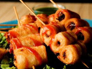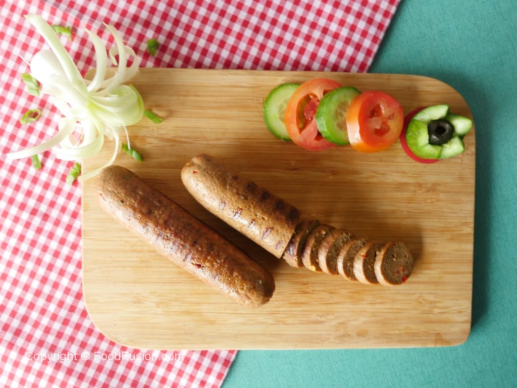 Boiling water mein tayyar sausages dal ker 8-10 minutes kliya boil ker lein aur foran ice chilled pani mein dal ker 5 minutes kliya chor dein phir cling film ko nikal lein.