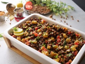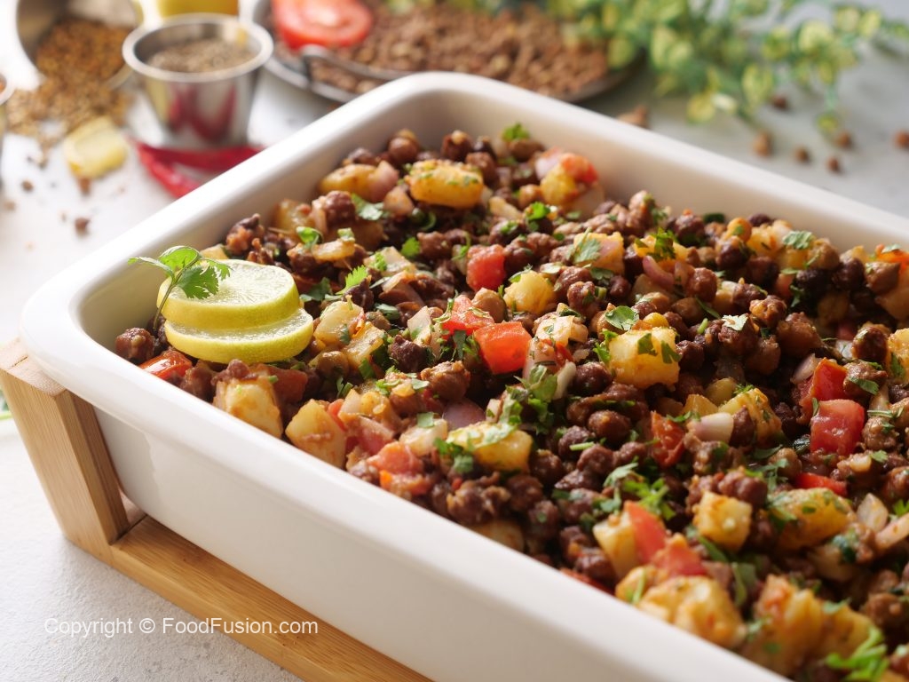 -Boiled aloo,pyaz,tamatar,hara dhania,lemon juice aur hari mirch dal ker ache tarhan mix ker lein.