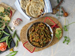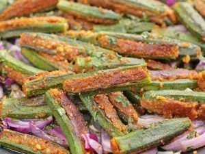 In a wok,add cooking oil & fry okra on high flame for 5-6 minutes then takeout & set aside.