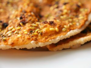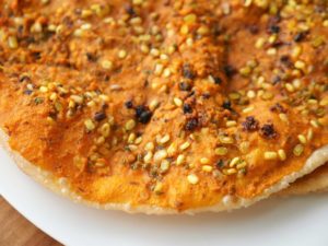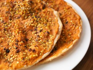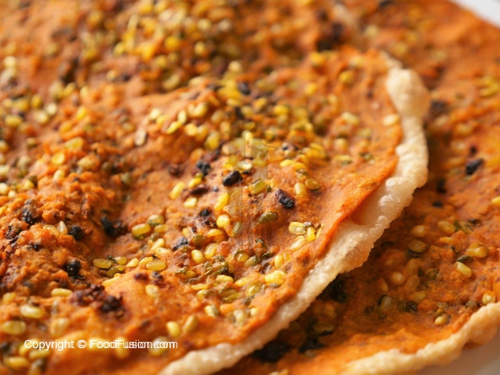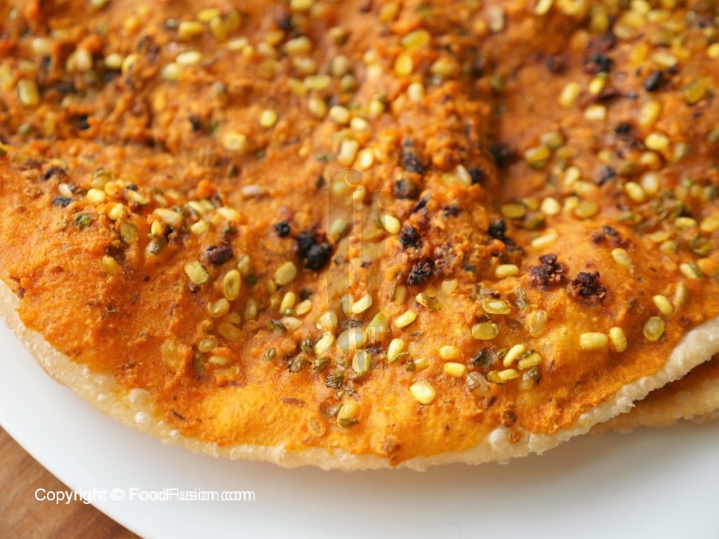 Spread prepared paste,sprinkle dried pomegranate seeds and green gram.