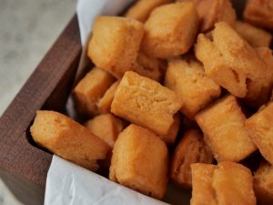 -In a wok,heat cooking oil & fry on low flame for 4-5 minutes or until they float on surface & continue frying on medium flame until golden & crispy (6-8 minutes) & stir in between.