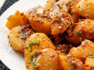 -Aloo dal ker ache tarhan mix karein aur darmiyani ancch per 4-5 minutes kliya paka lein phir tez ancch per 1-2 minutes kliya paka lein.