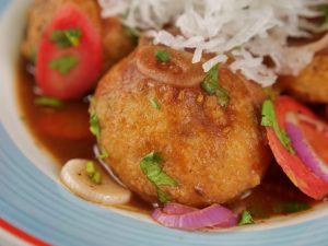 -In a wok,heat cooking oil,pour batter with the help of spoon & fry on low flame until golden.