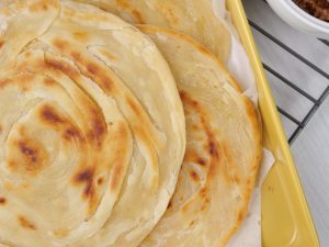 -Heat griddle & fry paratha on medium flame from both sides with clarified butter.