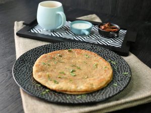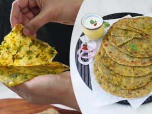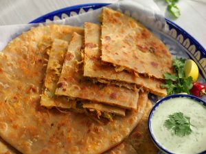 -Heat griddle,add cooking oil,margarine,let it melt & fry paratha from both sides until done with margarine (makes 6).
