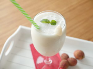 In blender,add yogurt,milk,sugar,lychee and blend well.