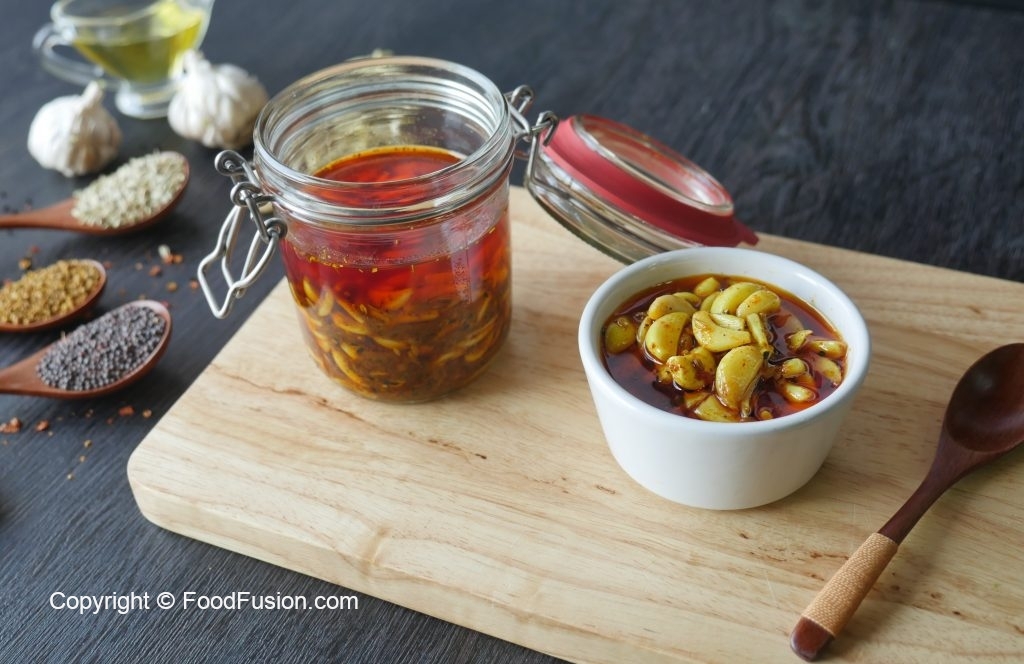 In dry & clean jar,garlic achar,cover tightly and keep in sunlight for 2 days.