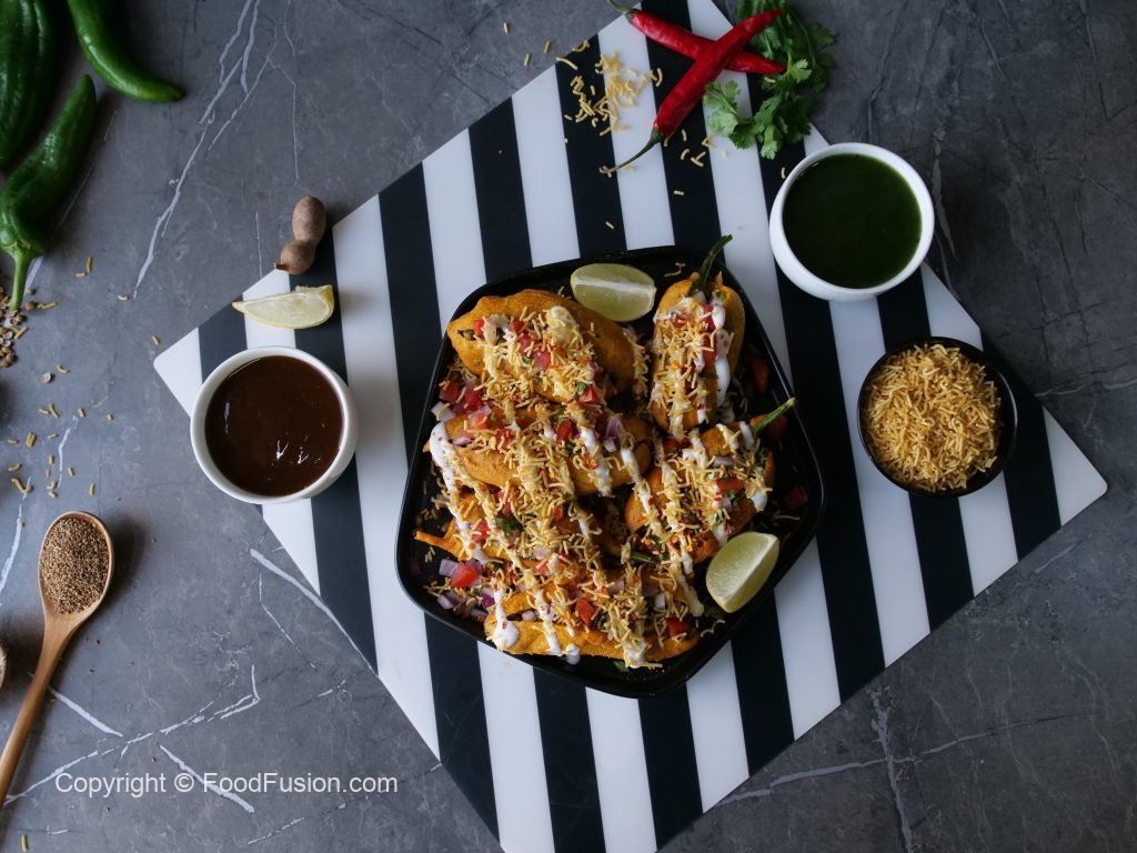 -Ab pyaz, tamatar, hara dhania, chaat masala, dahi, nimco sev or lal mirch crushed upar se charak kar serve karen!