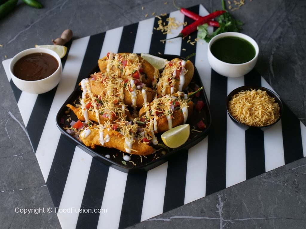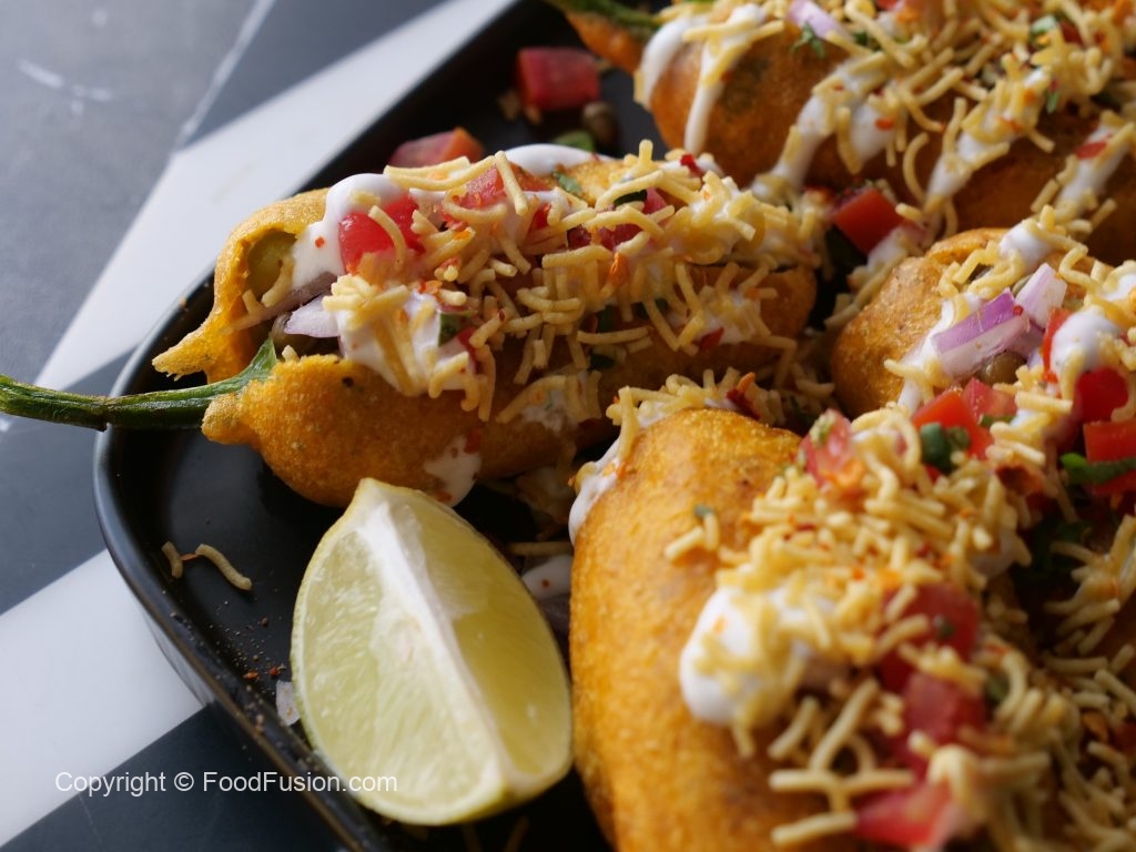 -Mirchi pakora ko beech se cut laga kar khol len or hari mong daal bhar den.