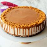 Drizzle melted lotus spread on the edges & sprinkle crushed biscuits.