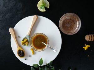 -½ tbs of honey ginger shot with 1 cup of warm water or freshly squeezed orange juice twice a day.