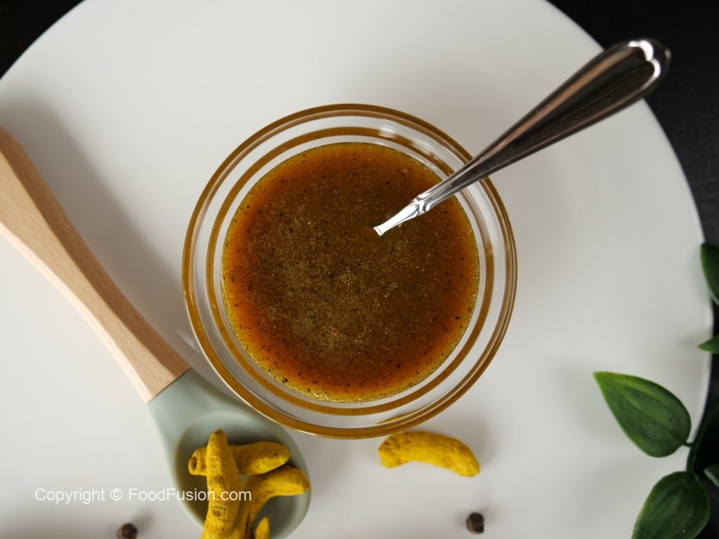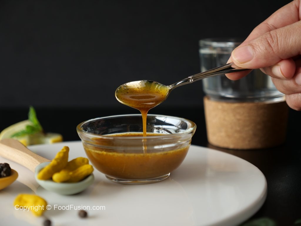 -Bowl mein honey,adrak,haldi powder aur kali mirch powder dal ker ache tarhan mix ker lein.Honey ginger shot tayyar hai.