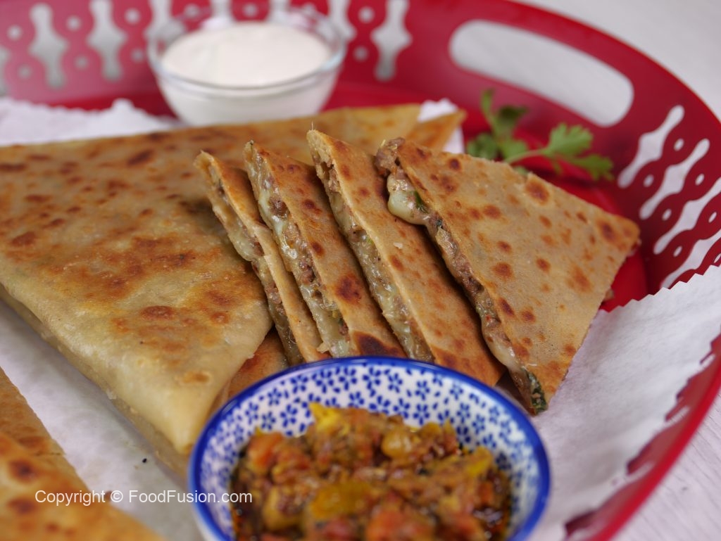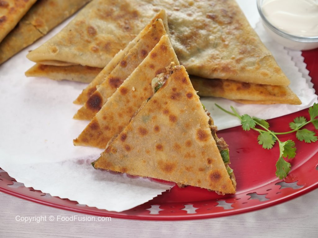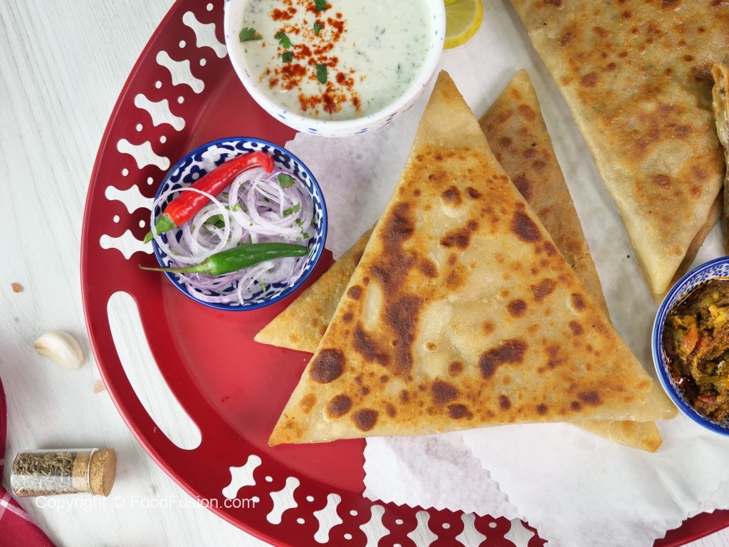 -Place paratha and shallow fry it on low flame until golden brown from both sides, cut in small triangles and serve (makes 6).