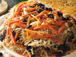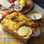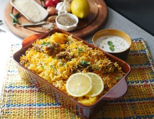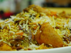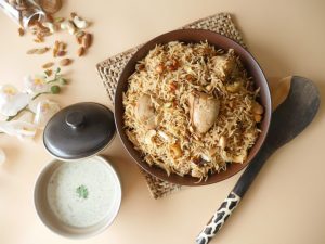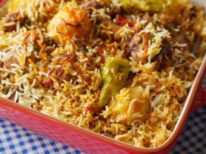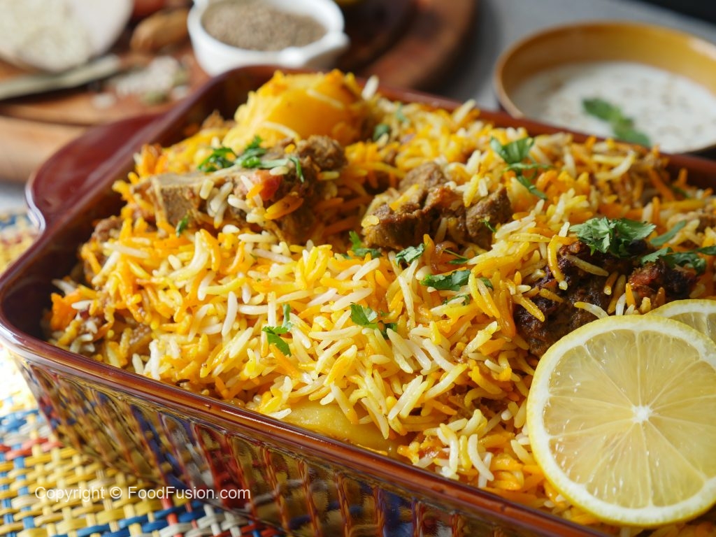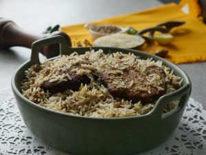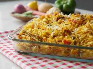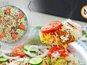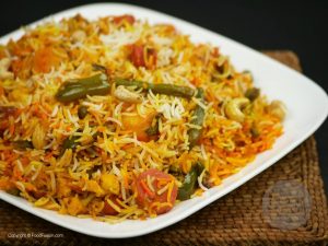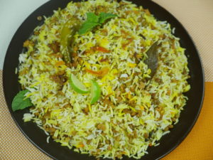 Add dissolve food color,fried onion,cover & steam cook on low flame for 10-12 minutes & serve!