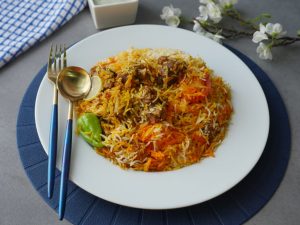 In prepared biryani marinade,add beef and mix well,cover & marinate for 1 hour.