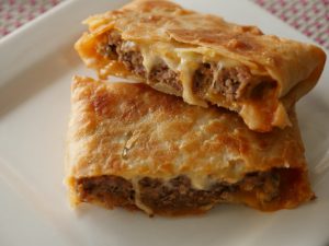 Cooked meat,fried shimla mirch,fried tamatar dal dein,tomato flavored chawal ki layer laga lein aur halka sa press ker lein.