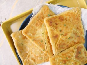 -Melted makhan brush ki madad sa laga lein,maida chirak dein aur dough ki tamam sides ko fold ker ka square shape bana lein.