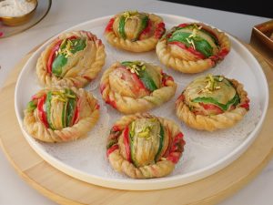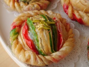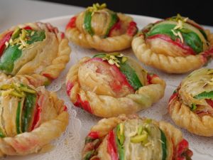 -Now twist and fold the sides of dough making a design (makes 12-13).