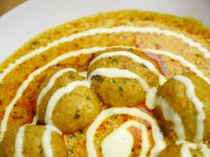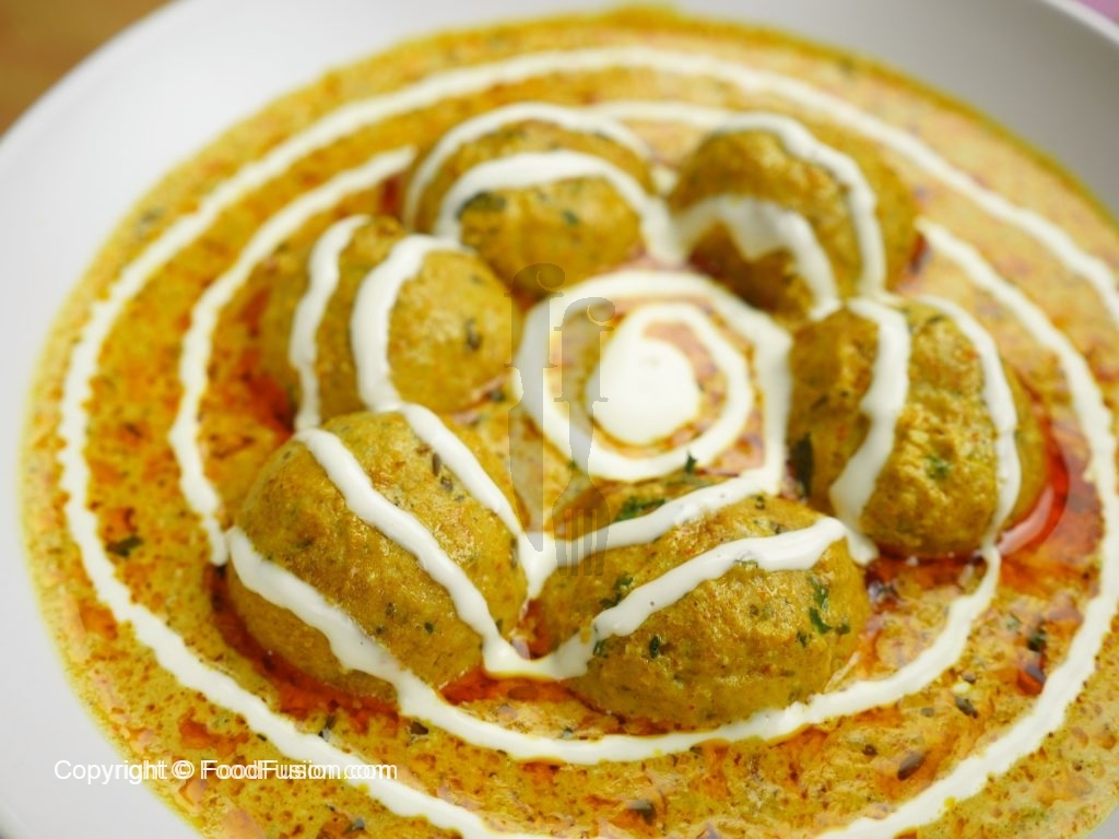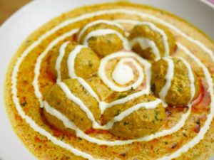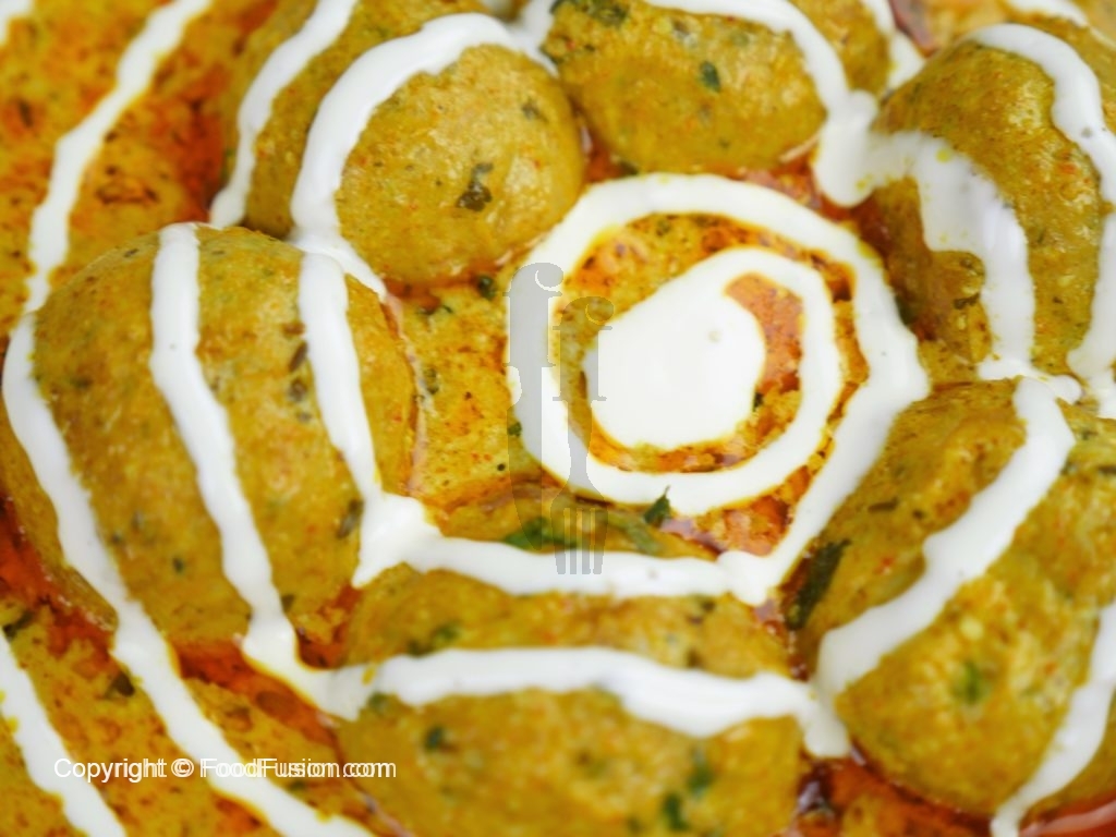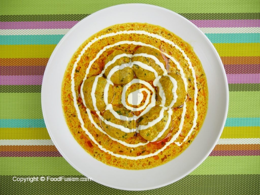 In wok,add oil and fry meat balls/kofta until golden and set aside.