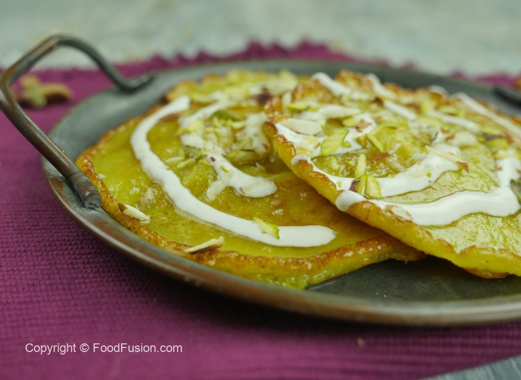 Frying pan mein cooking oil aur tayyar batter (approx. ½ cup) dal dein aur dono sides sa golden brown hunay tak fry ker lein.