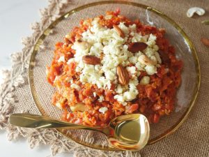 Cream aur badam & pista sa garnish ker ka serve karein.