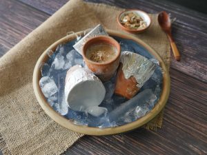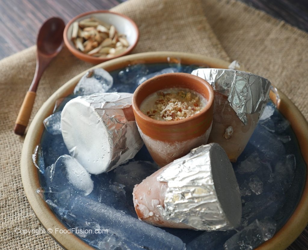 Pour the kulfi mixture into clay molds (makes 9-10) and let it cool.