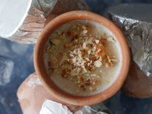 Place clay pots directly on the flame,pour cooked kulfi mixture and bring it to boil then take out in a bowl.