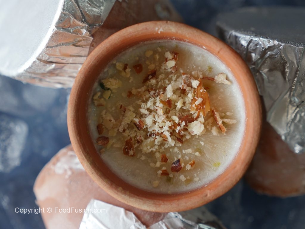 Clay pots ko directly flame per rakhein aur cooked kulfi mixture dal dein aur ubal anay ka bad bowl mein nikal lein.