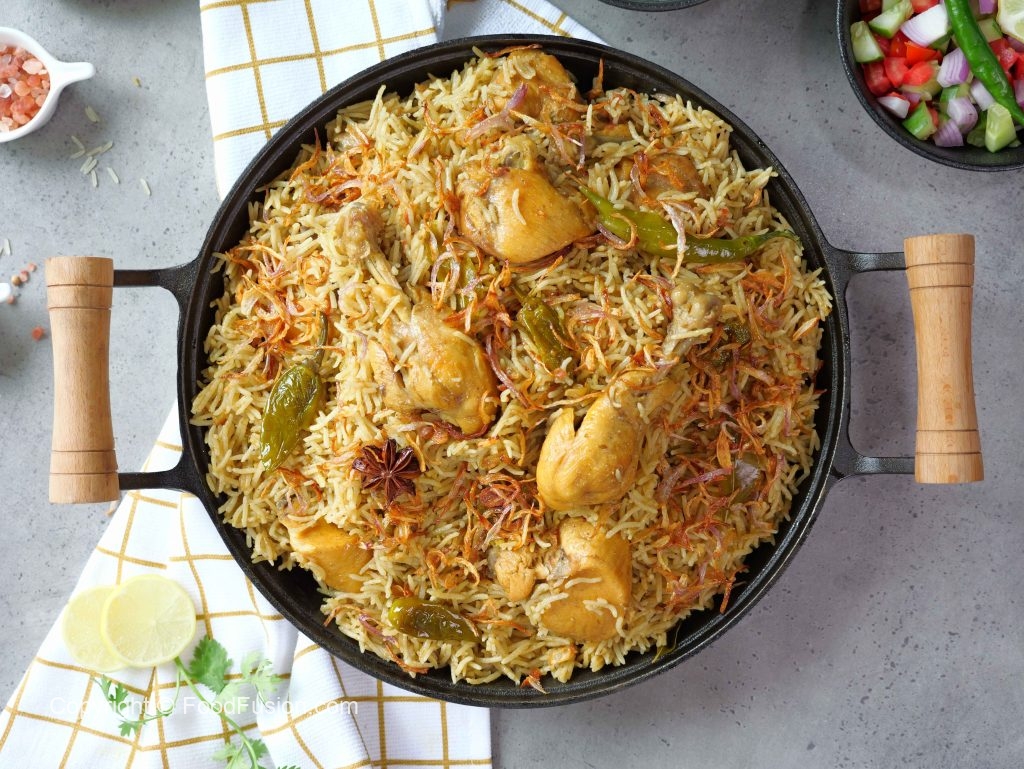 -Add fried chicken & mix well,add water,mix well & bring it to boil,cover & cook on low flame for 10-12 minutes.