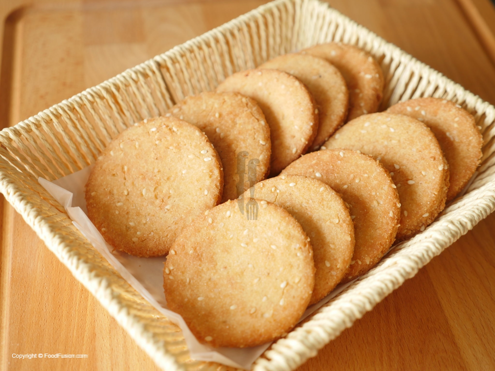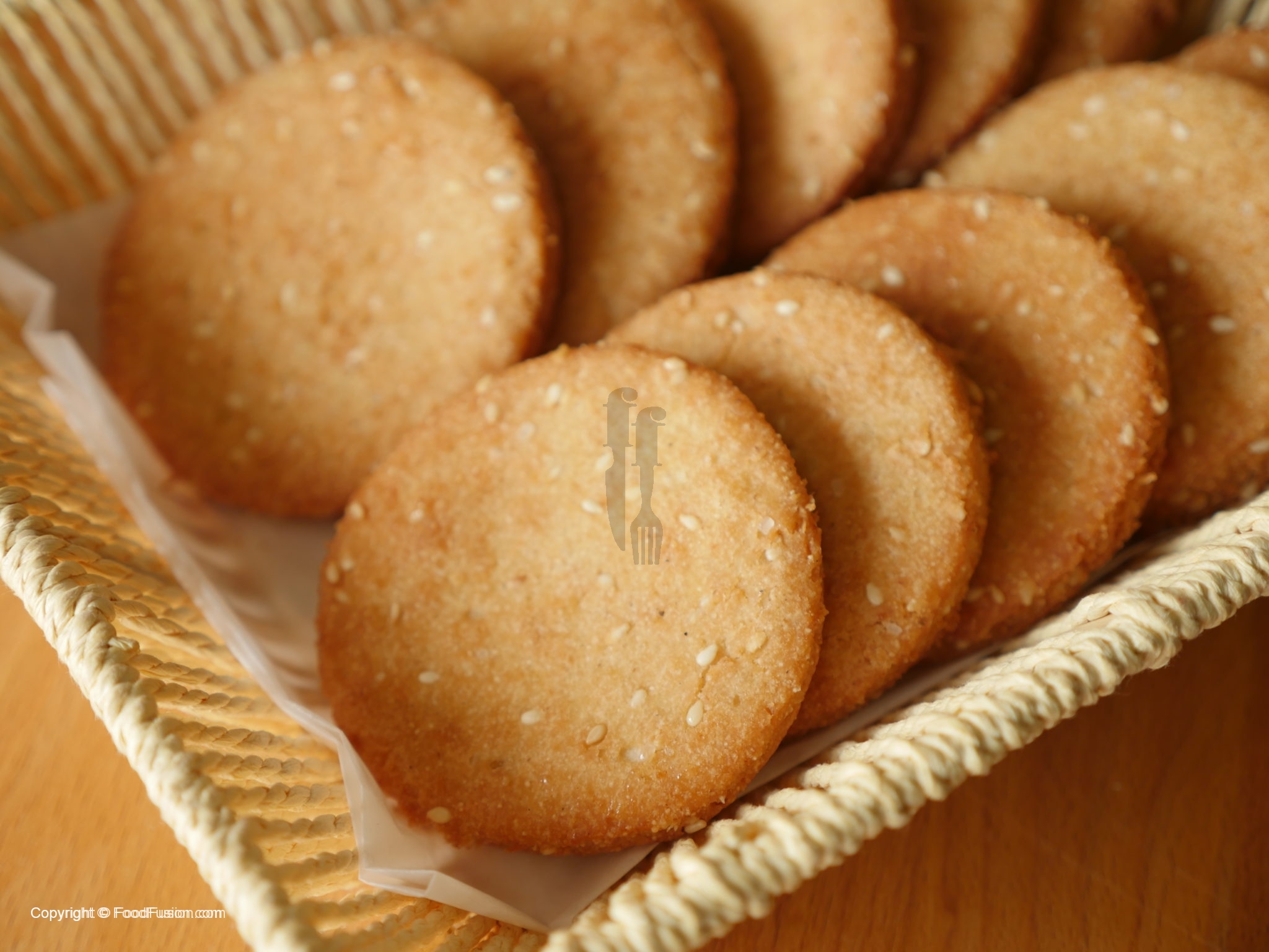 In bowl,add all-purpose flour,sesame seeds,desiccated coconut,semolina,cardamom powder and mix well.