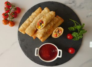 Option no 2: Air fryer machine mein mexican rolls rakh ker oil sa grease karein aur 180 C per 10 minutes kliya air fry ker lein.