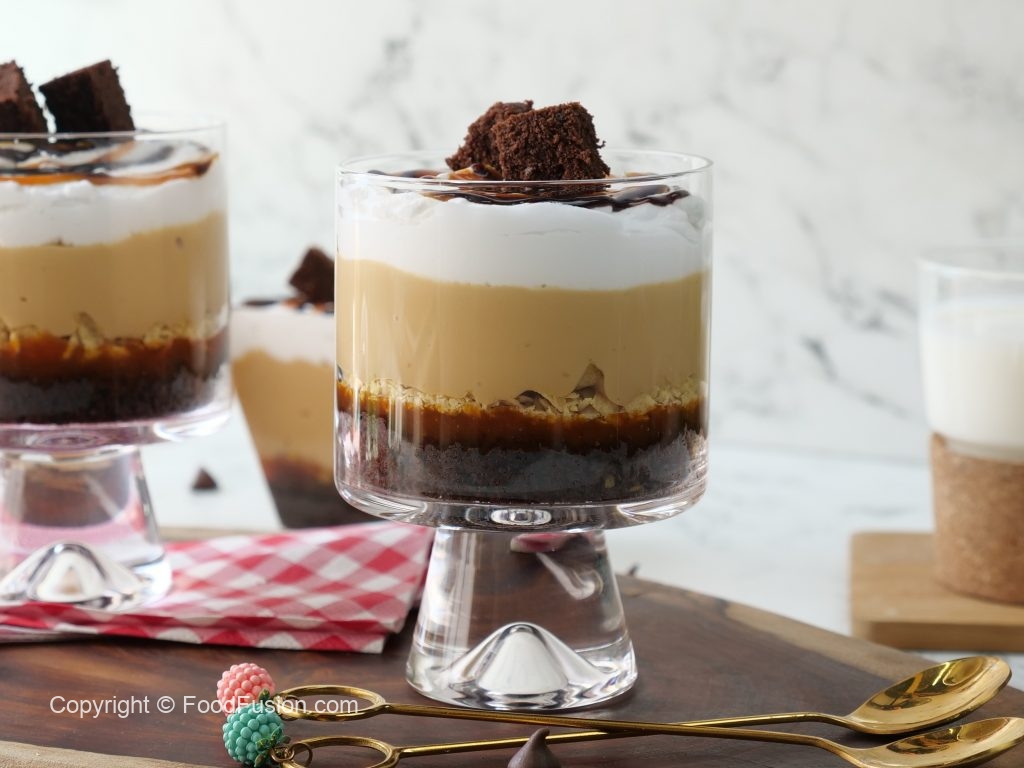 A mouth watering delight for Kids and adults of all ages. No one can say not to this Milk Chocolate Caramel Trifle Cups recipe. #HappyCookingToYou #FoodFusion #OlpersMilk
