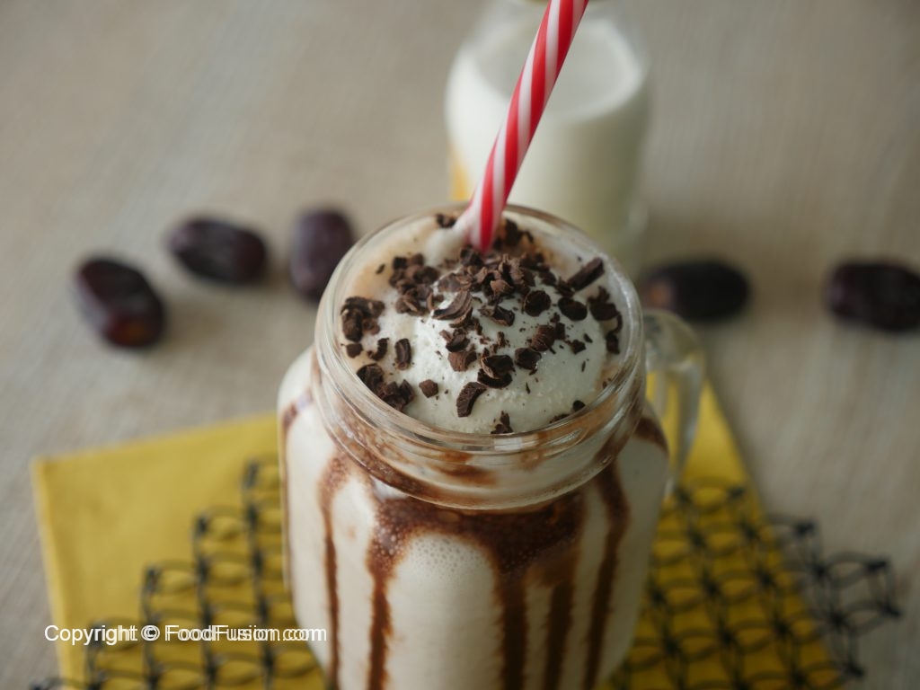 In serving jar,add chocolate syrup,prepared smoothie,ice cream and garnish with chocolate & serve chilled!