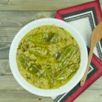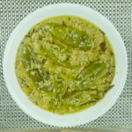 Add sautéed green chilies, ½ cup water and curry leaves ad let it cook for another 8 mins. Add lemon. Let it simmer for 2 mins.