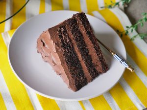 Ab tayyar chocolate frosting dal ker pheela lein aur same yehe process cake ki third layer ka saath karein aur frosting laga ker cake ki sides ko cover ker lein.