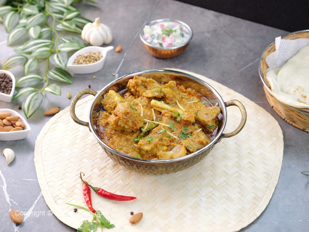-Now add boiled mutton,mix well & bring it to boil,cover & cook on low flame for 12-15 minutes then cook on high flame until oil separates.