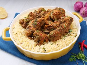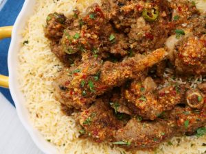-On serving dish,add butter rice,makhni tikka & pour lemon butter sauce.