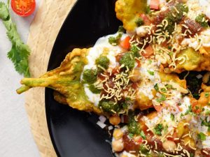 Take naam,add chicken,onion,tomato,cabbage and drizzle chutney.
