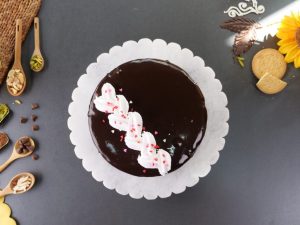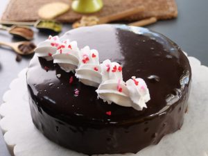 -Carefully remove cake from springform pan & pour prepared chocolate ganache.