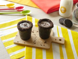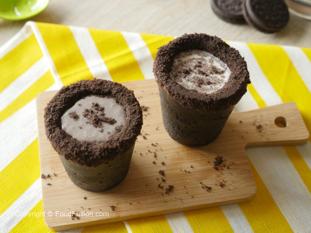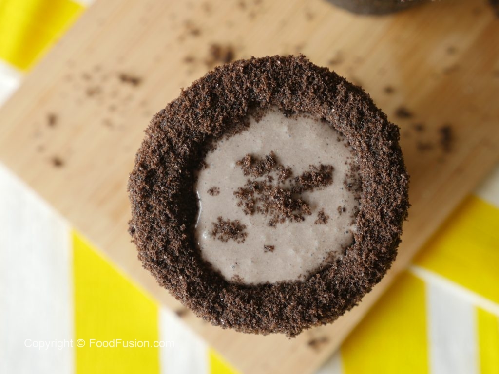 Dosray mold ki madad sa gently press ker ka mold ka ander oreo shots bana lein aur 30 minutes kliya freeze ker lein (makes 4).