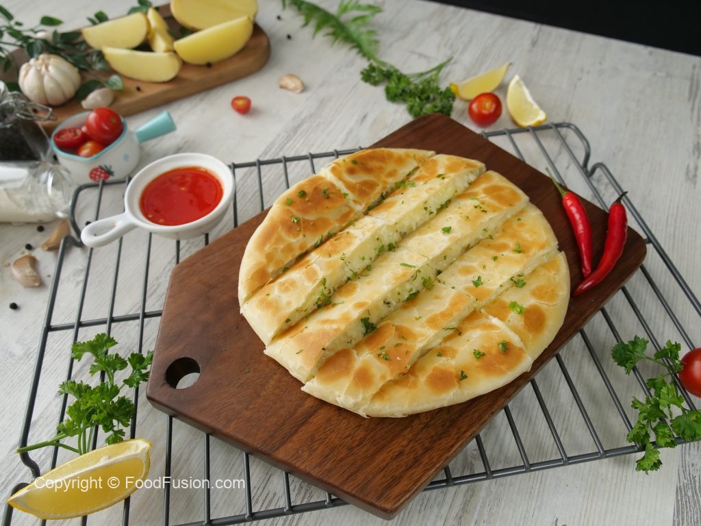 You will love this No Bake Potato Cheese bread made in frying pan. Make it and enjoy with friends and family. #HappyCookingToYou #FoodFusion