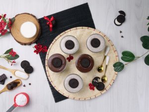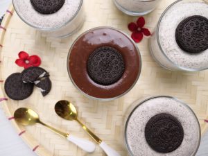 -Pipe out prepared Oreo cream,garnish with prepared ganache & Oreo biscuits.