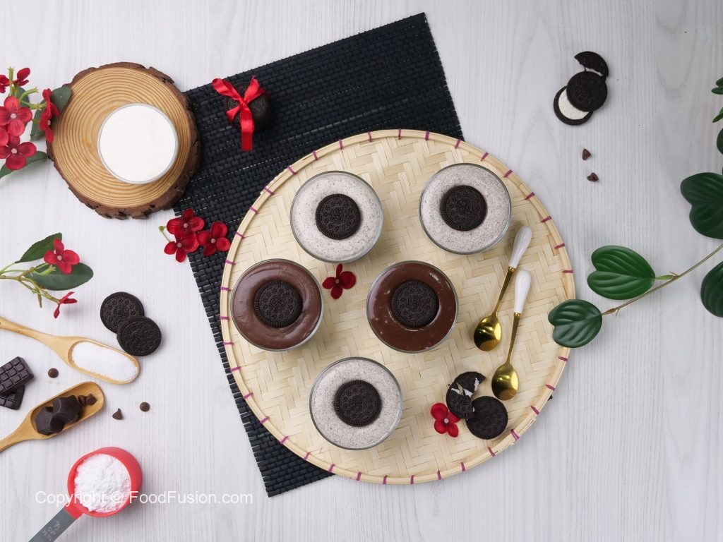 -In serving cup,add 2-3 tbs of oreo crumbs & press firmly to set an even layer.