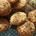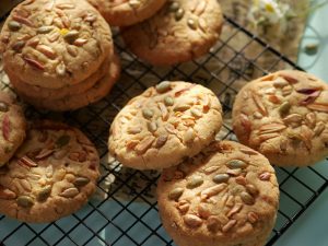 -Take a small dough (50g),make a ball & press gently to make a cookie shape & press the cookies on mixed nuts from one side (makes 15).