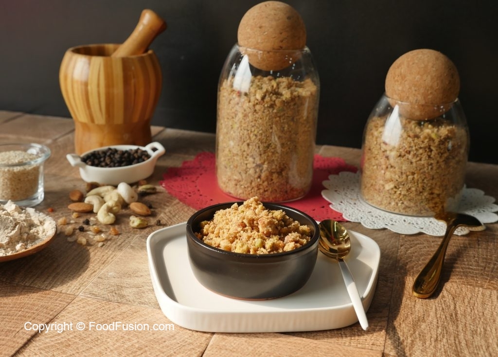 Sindhi Style Panjiri (Bhogaro) a recipe passed on to Food Fusion by Saima late grand mother. There are may recipes for it, this one is Sindhi style Panjiri called Bhogaro. #HappyCookingToYou #FoodFusion Panjiri is a nutritional supplement to nurish and stregnthen the body. Specially recommended for new mothers/nursing mothers and growing children. Consume 2-3 TBS at a time, overeating may lead to indigestion.