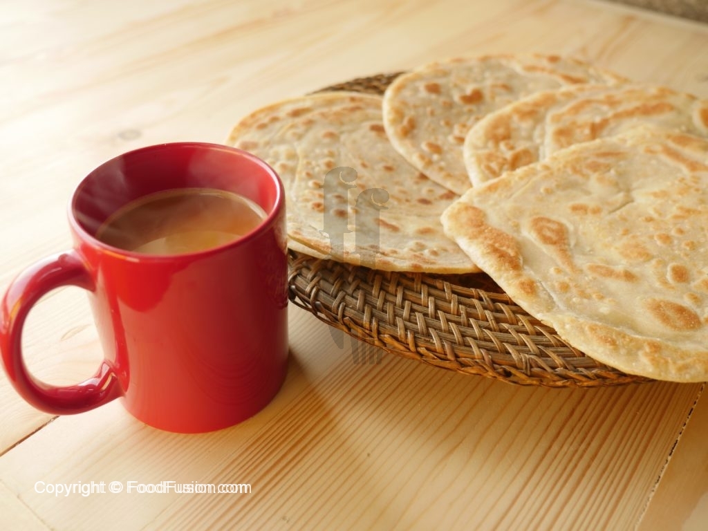 Melted ghee laga ker upper sa atta chirak dein,dough ki charon sides ko fold ker lein aur att mein coat ker ka rolling pin ki madad sa bail lein.