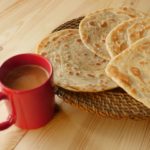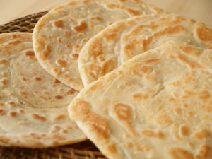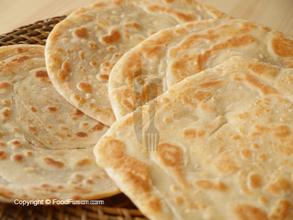 Spread melted ghee and sprinkle dry flour,pleat or over lapping the dough from the opposite side, stretch and roll the pleated dough into a circle and join the edge.